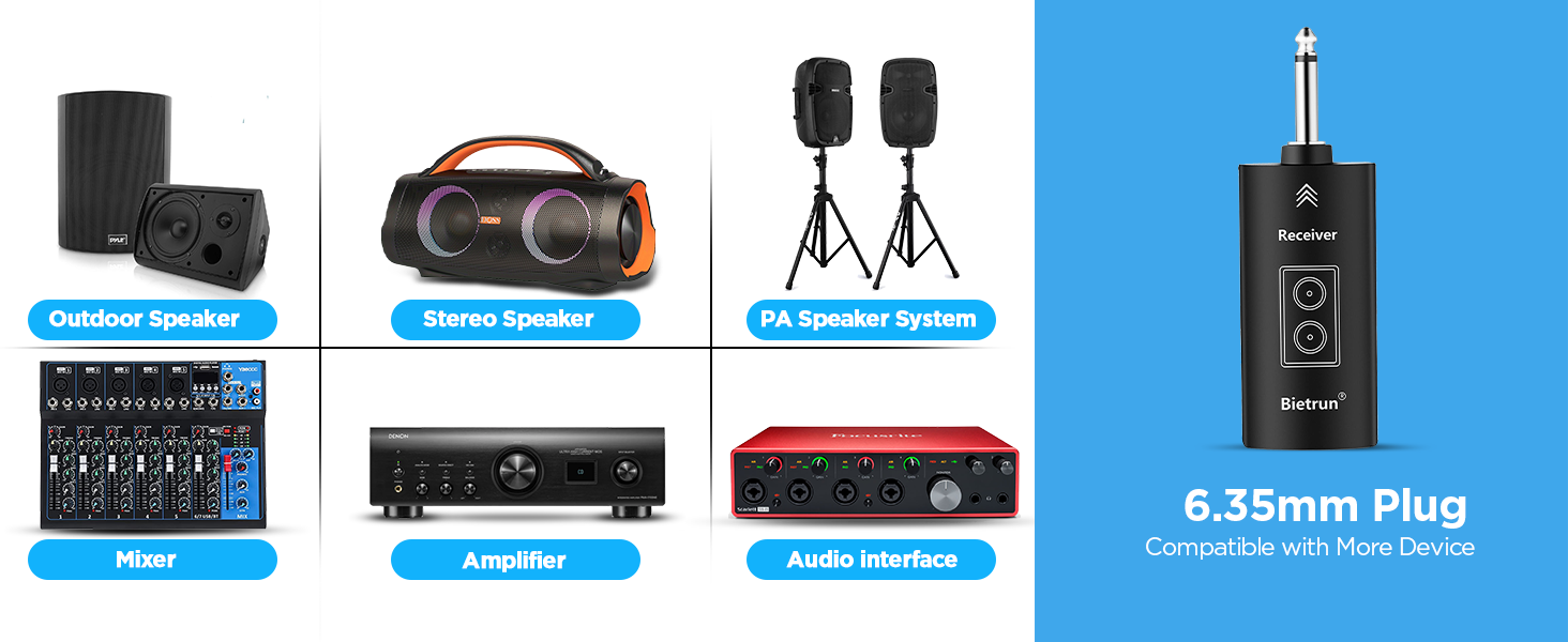 Receptor/Adaptador Bietrun Solo WXM09, WXM09A, WXM19, WXM19A, WXM21, WXM31, WXM31-2 Micrófono inalámbrico (1/4") con Bluetooth