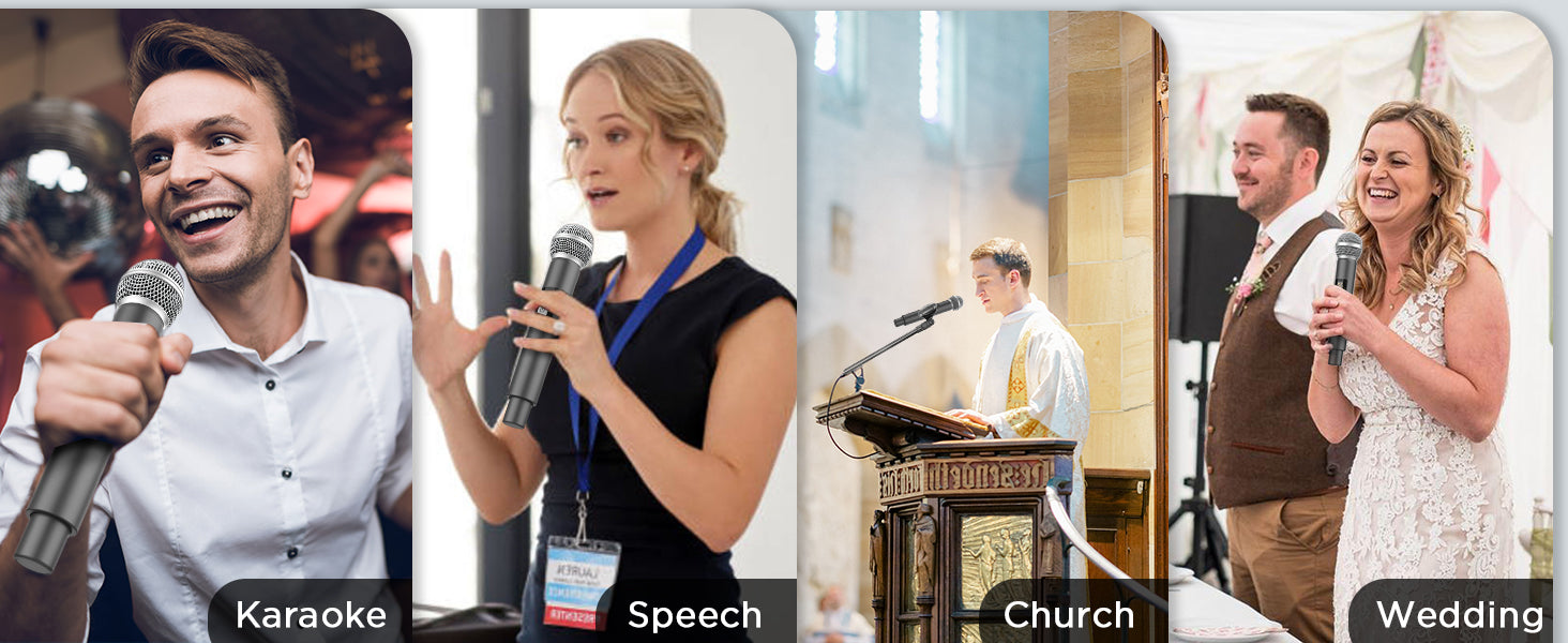 Micrófono inalámbrico de mano dinámico de metal UHF para karaoke, receptor recargable (duración de 6 h), alcance de 59 m, ideal para karaoke, canto, escenarios, bodas, discursos, máquinas de karaoke, altavoces, amplificadores y mezcladores.