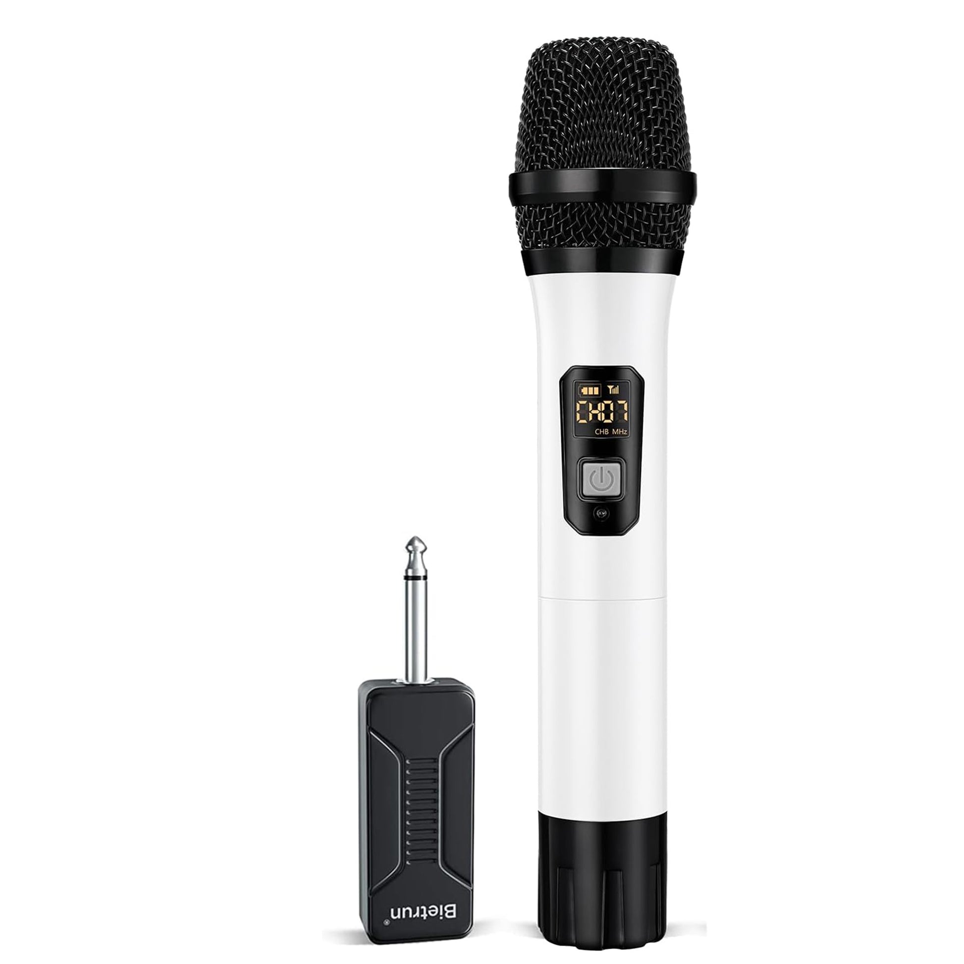 Micrófono inalámbrico Bietrun, UHF, de mano, dinámico, metálico, con receptor recargable y salida de enchufe de 1/4'', para karaoke, iglesias, bodas y fiestas (alcance de 30 m) (conexión automática)