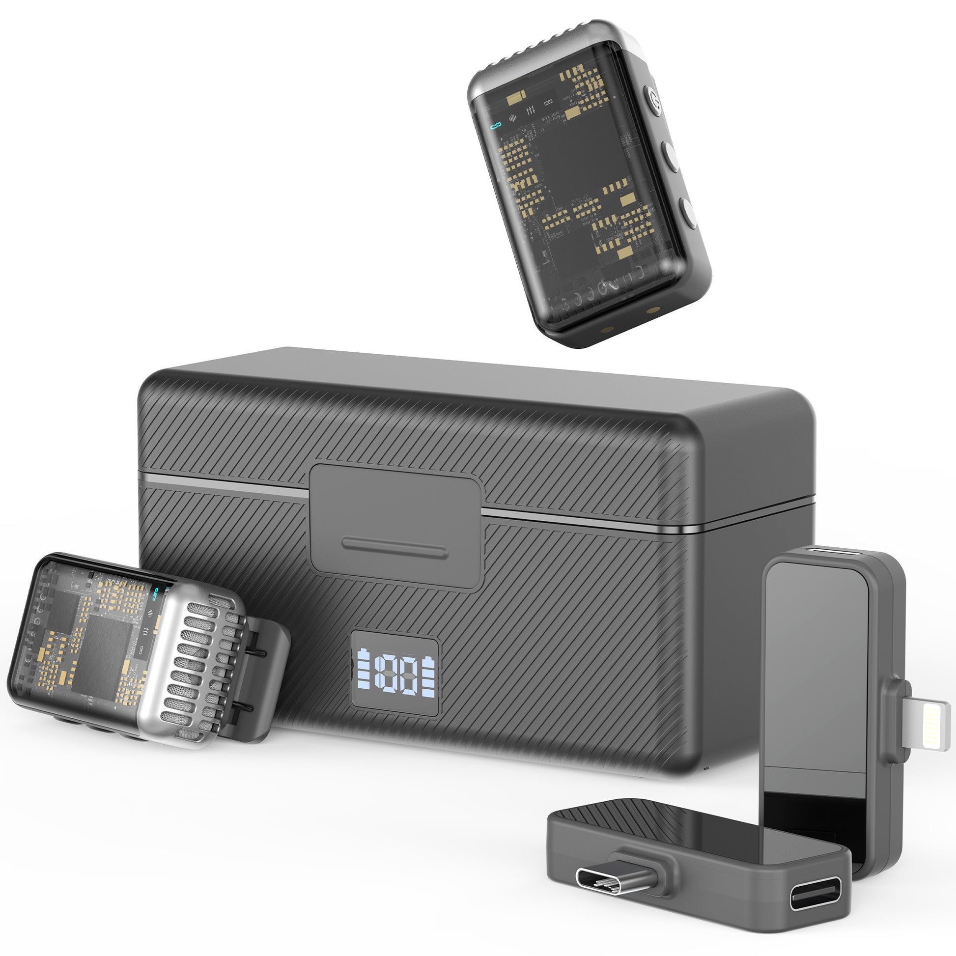 Wireless Lavalier Microphone for iPhone/AndroidPhone/iPad with Lightning & Type-C 2 Receiver, Noise Cancelling/Echo/48kHz 24-bit/164ft Range/Rechargeable Case of 30 hrs Work Time for TikTok, Vlogging
