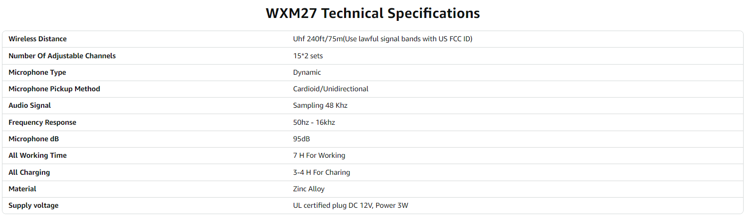 Micrófono inalámbrico Bietrun UHF WXM02/WXM04 con batería recargable de 720 mAh, alcance de 50 m y salida de 1/4" para karaoke, sistema de altavoces y mezclador.
