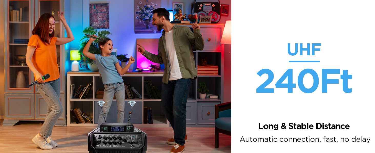 Micrófono inalámbrico de mano dinámico de metal UHF para karaoke, receptor recargable (duración de 6 h), alcance de 59 m, ideal para karaoke, canto, escenarios, bodas, discursos, máquinas de karaoke, altavoces, amplificadores y mezcladores.