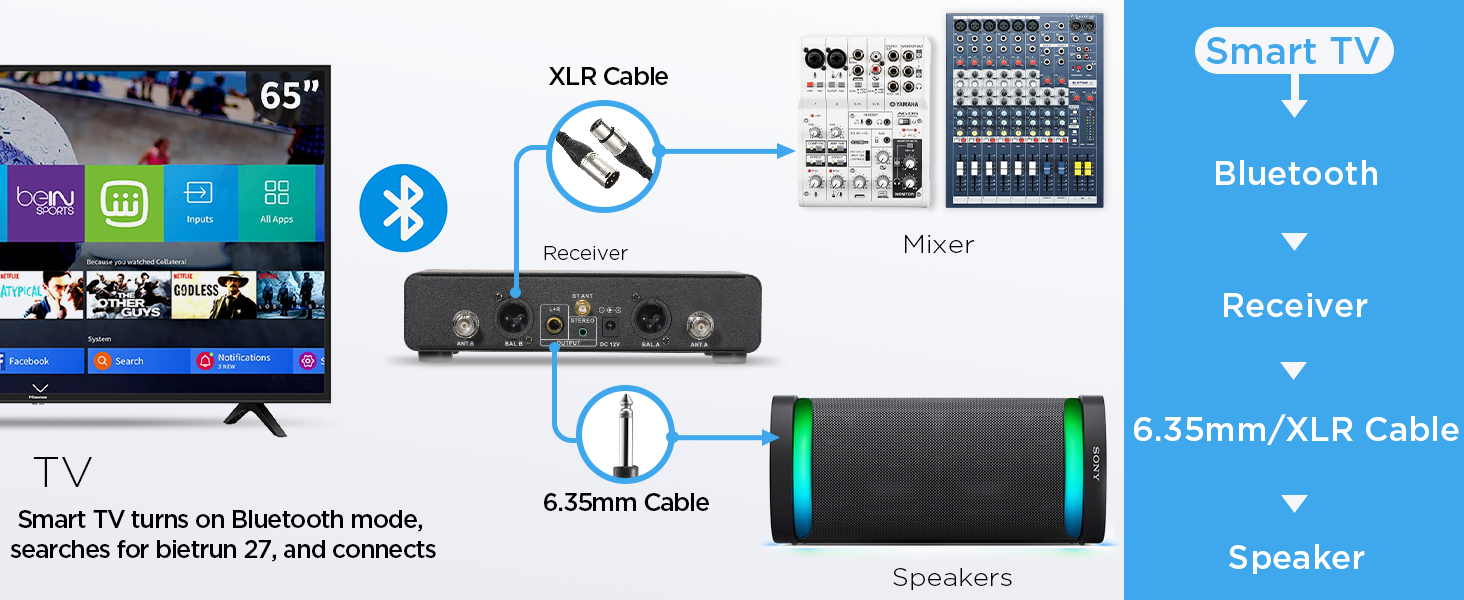 Receptor/Adaptador Bietrun Solo WXM09, WXM09A, WXM19, WXM19A, WXM21, WXM31, WXM31-2 Micrófono inalámbrico (1/4") con Bluetooth