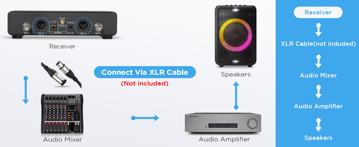 Sistema de micrófono inalámbrico XLR Bietrun, alcance de 50 m, micrófono de mano dinámico inalámbrico UHF profesional de metal dual con cable XLR para mezclador de audio, amplificador, karaoke, iglesia, discursos y bodas.