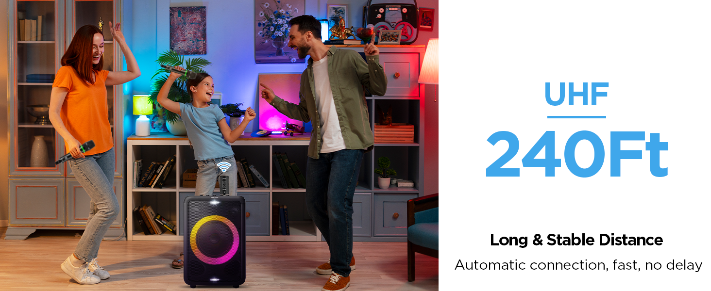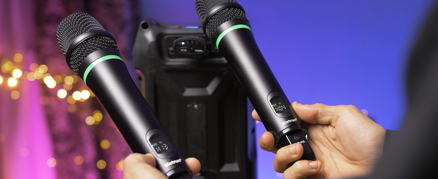 Micrófonos inalámbricos Bietrun con eco, agudos, graves y Bluetooth, alcance de 160 pies, sistema de micrófono dinámico de karaoke portátil UHF de mano con receptor recargable para karaoke, canto, amplificador, sistema PA, DJ, escenario