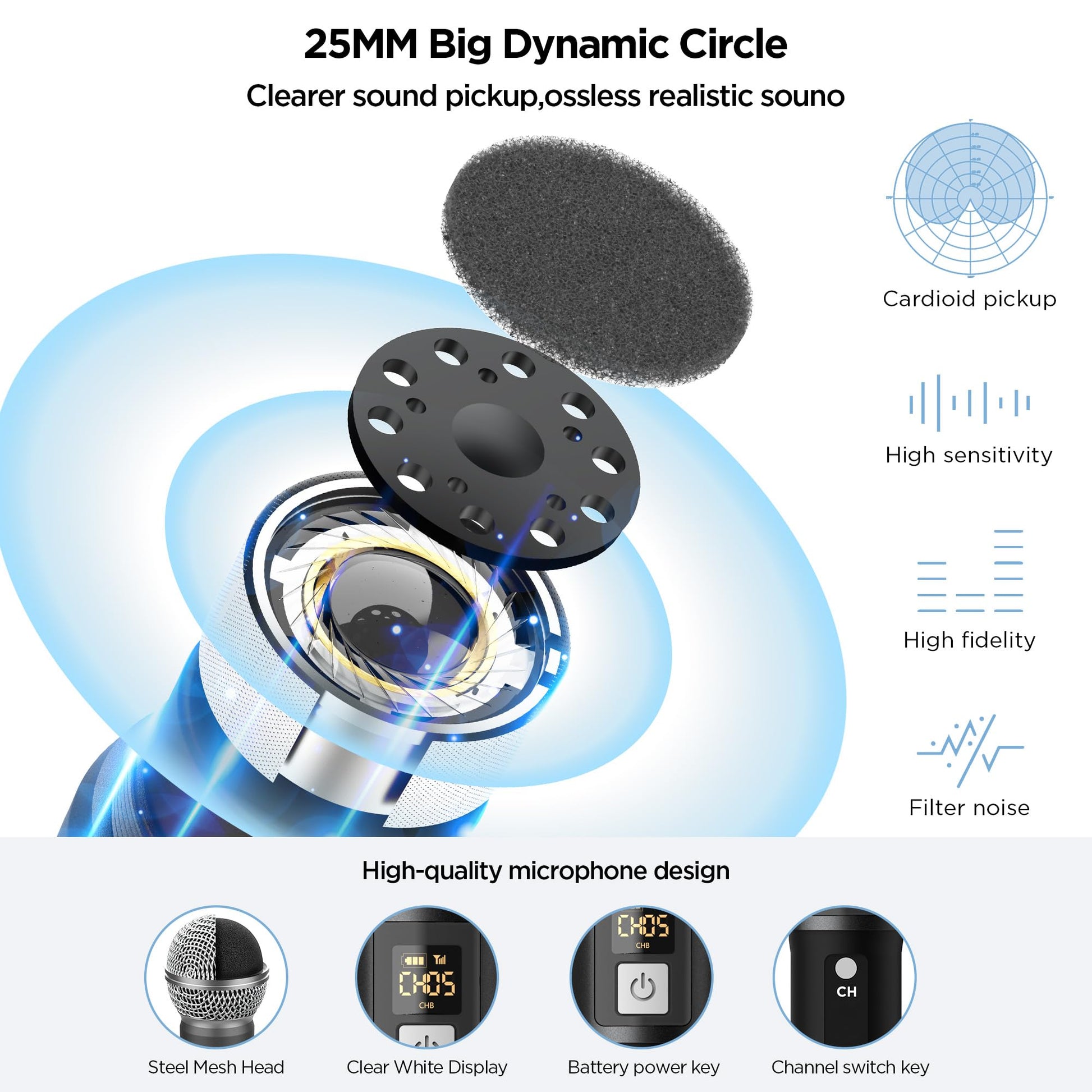 - Micrófonos dinámicos Pro-Clear Vocals: núcleo de micrófono unidireccional dinámico incorporado, relación señal-ruido: 95 dB, impedancia: 600 ohmios, sonido nítido y claro, sin interrupciones, silbidos ni retroalimentación. ● ideal para iglesias, conferencias, discursos, podcasts web, instructores de yoga, fiestas familiares, ceremonias de apertura, instructores de baile, promociones, etc.