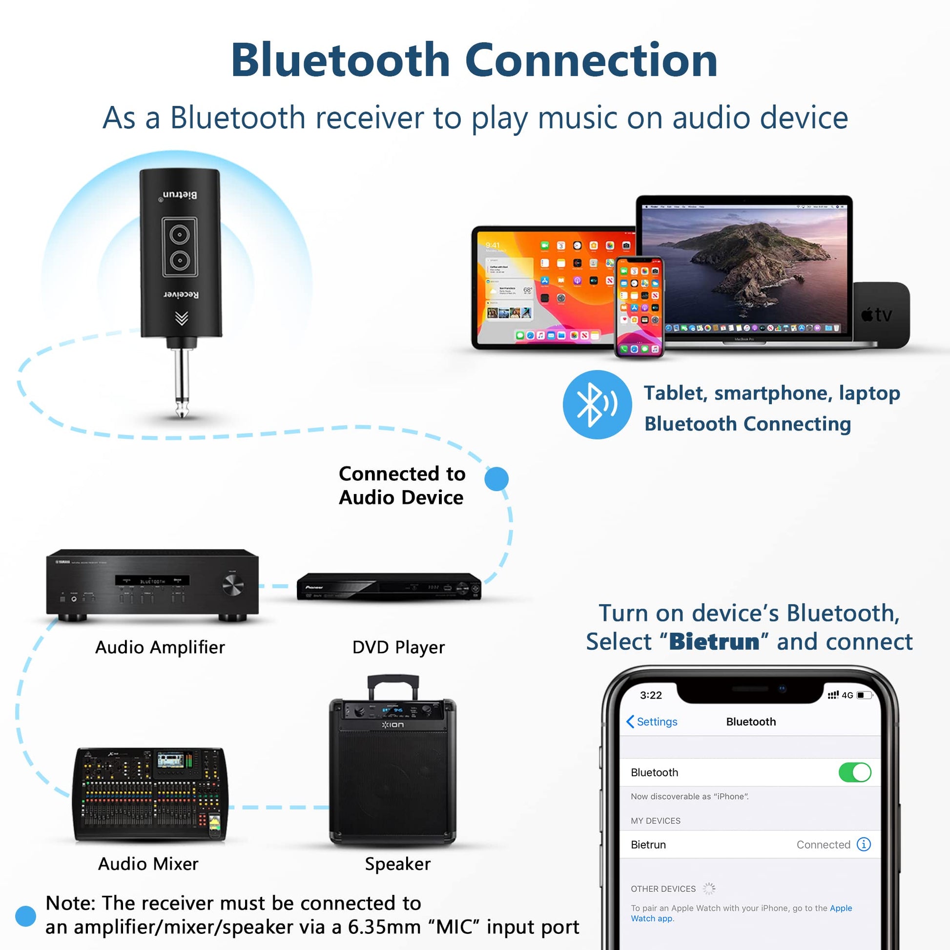 Receptor/Adaptador Bietrun Solo WXM09, WXM09A, WXM19, WXM19A, WXM21, WXM31, WXM31-2 Micrófono inalámbrico (1/4") con Bluetooth