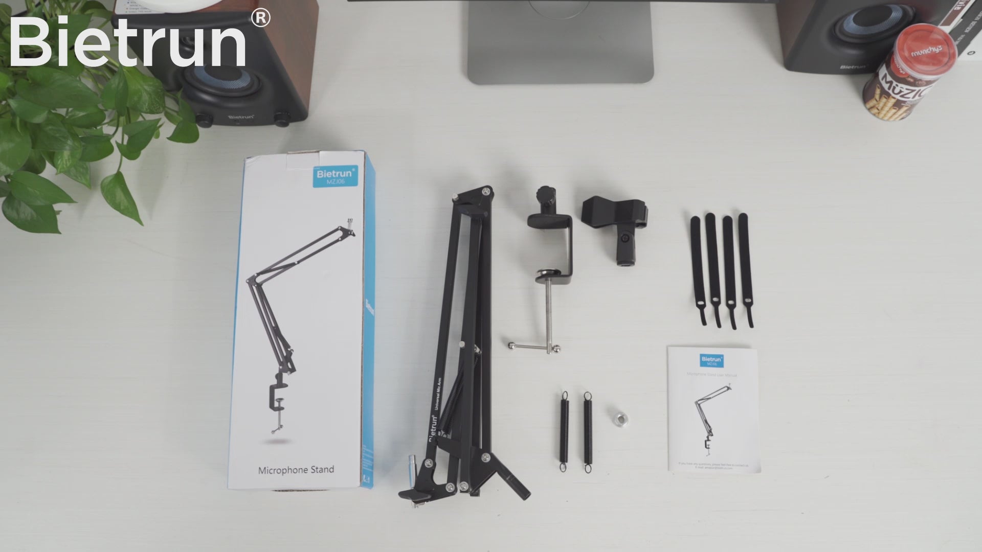 - 【Lista de embalaje】1 x brazo de pluma, 1 x abrazadera de escritorio, 1 x clip de micrófono, 1 x adaptador de 3/8" a 5/8", 4 x bridas para cables, 1 x manual.