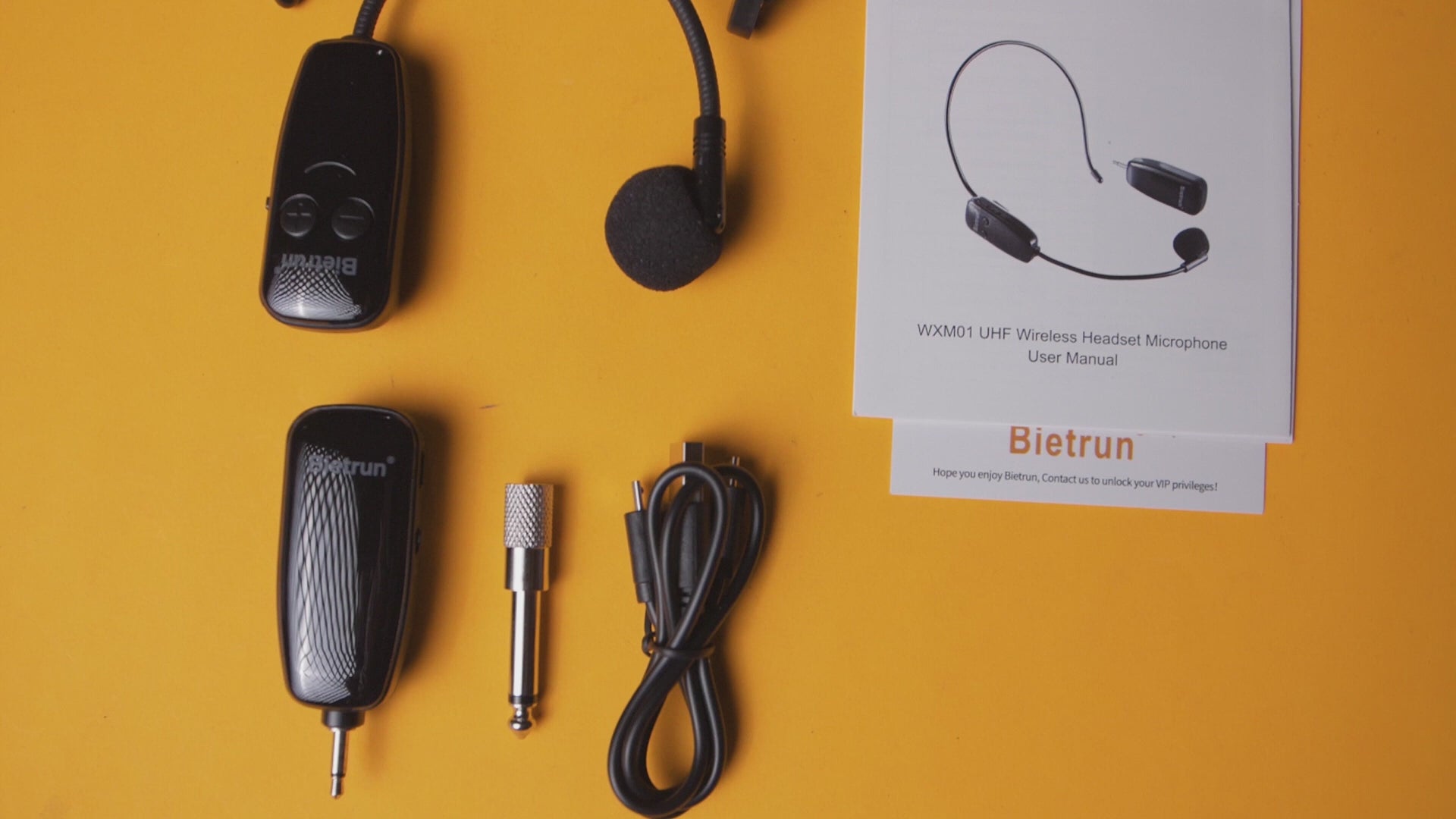 Micrófono inalámbrico Bietrun con conector de 1/4", alcance de 50 m, micrófono de diadema UHF y micrófono de mano 2 en 1, para karaoke, amplificador, altavoces, sistema de sonido, enseñanza y fitness (negro)