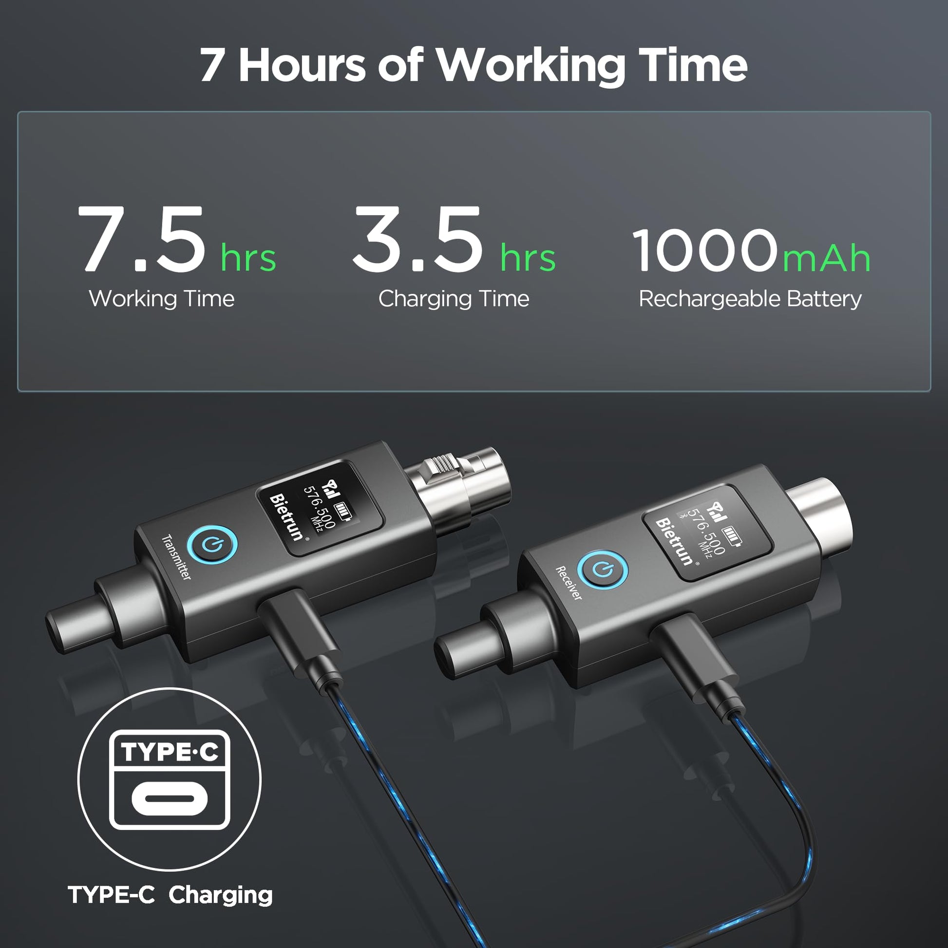 Transmisor y receptor XLR inalámbrico Bietrun, adaptador XLR con cable a micrófono inalámbrico, alcance UHF de 70 m, 30 canales, receptor con Bluetooth, adaptador XLR a 1/4'', para micrófonos dinámicos/de condensador, interfaz de audio