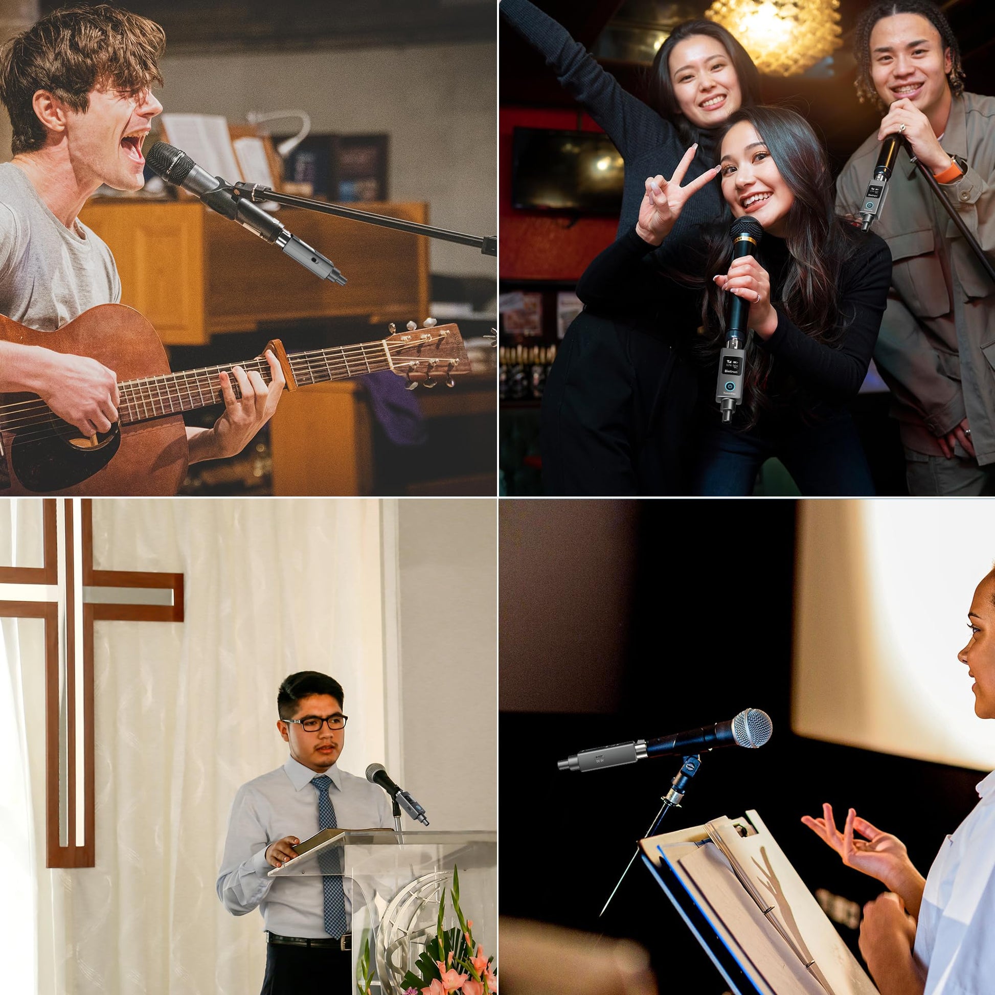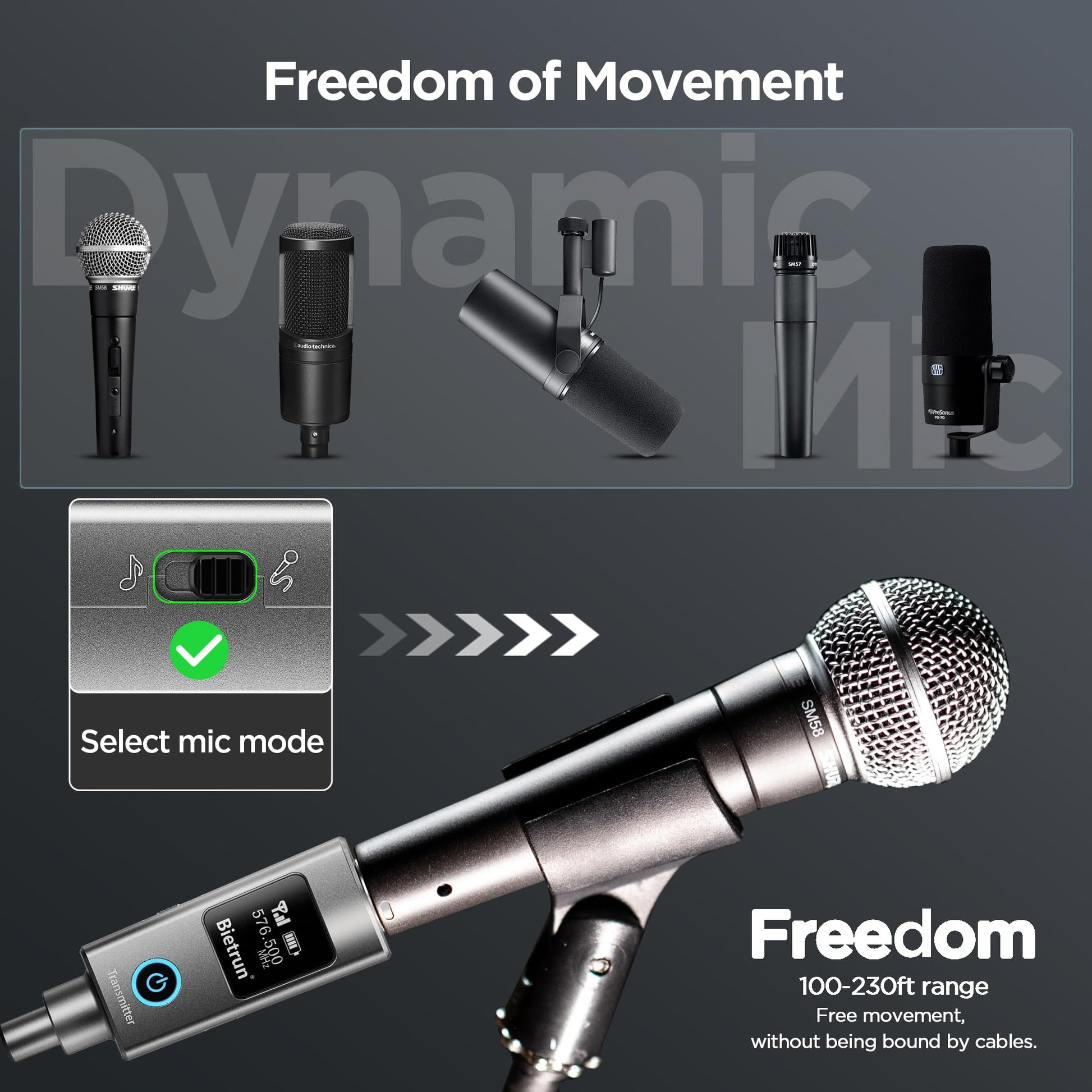 - Fácil de usar: ● Tanto el receptor como el transmisor vienen con conectores XLR y un adaptador XLR a 6,35 mm incluido. ● Compatible con una amplia gama de micrófonos, incluidos micrófonos dinámicos, micrófonos armónicos, mezcladores de audio, sistemas de PA, altavoces activos, preamplificadores, cámaras DSLR y más, como SM58/7B/MV7/SM57, serie 2020/2040/2035 y muchos otros. ● Ideal para diversos entornos, incluidos lugares de celebración, bodas y configuraciones de DJ móviles.