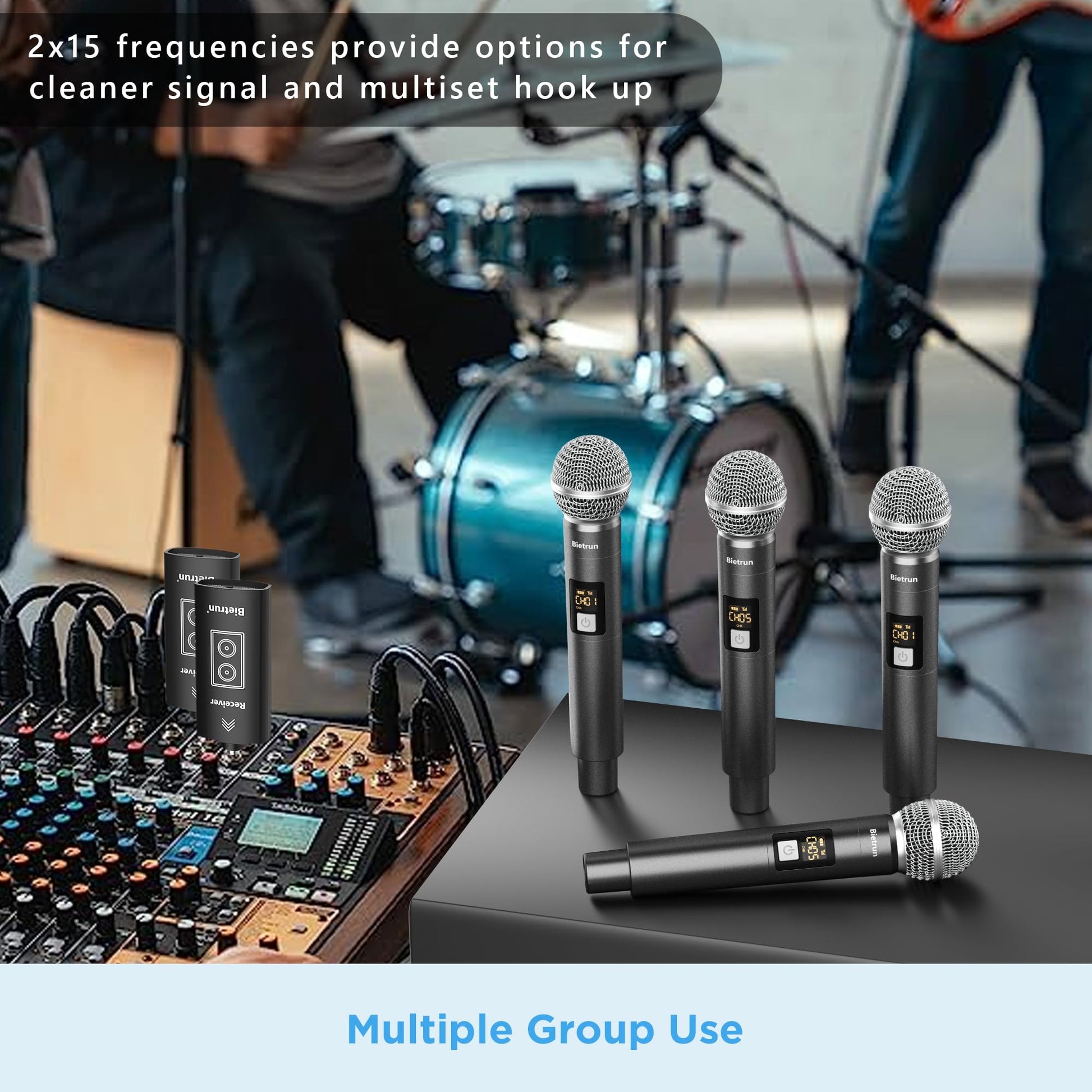 - MICRÓFONOS INALÁMBRICOS DE 98 PIES DE LARGA DISTANCIA: ● Núcleo inalámbrico UHF incorporado de nuevo diseño, actualización de la distancia de transmisión a 98 pies (lugar abierto). ● Mejora la estabilidad de la señal, sin demora, sin radiación, anti-aullido, anti-interferencias, frecuencia constante.