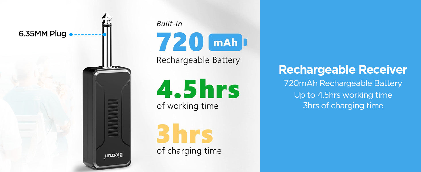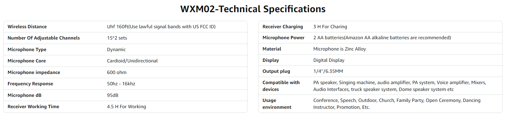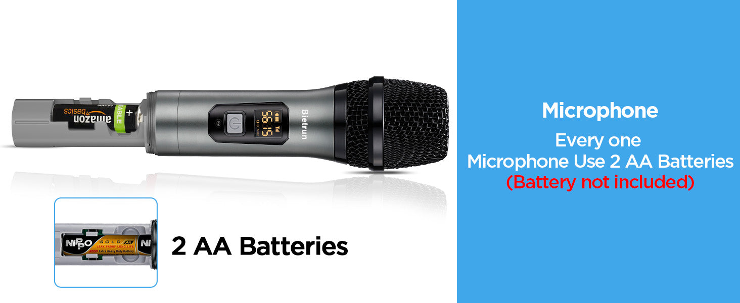 Bietrun UHF Receiver Wireless Microphone WXM02 / WXM04, with 720mAh Rechargeable Battery, 160 ft Working Range, 1/4" Output for for Karaoke Machine/PA Speakers System/Mixer