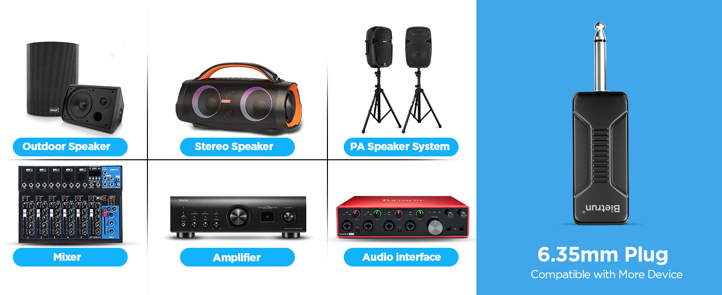 Bietrun Receiver/Adapter Only WXM09, WXM09A, WXM19, WXM19A, WXM21, WXM31, WXM31-2 Wireless Microphone (1/4") with Bluetooth