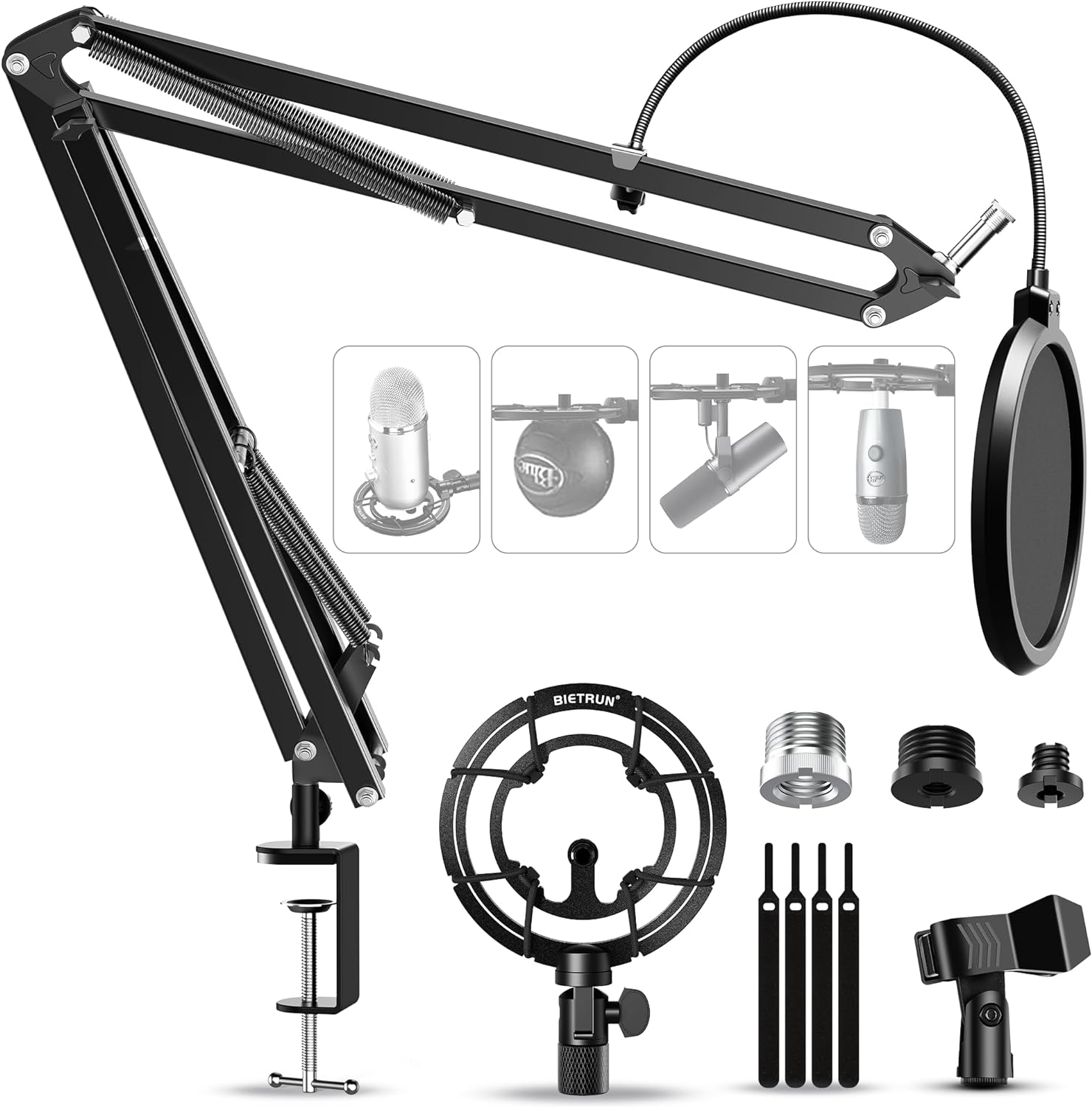 Microphone Boom Arm Desk Mount for Wave/Blue Yeti/Hyperx Quadcast/SM7B/SM58/MV7, Upgraded Metal Stable Heavy Duty Adjustable Scissor Desk Microphone Stand with Handheld Mic Clip, 3/8" to 5/8" Adapter