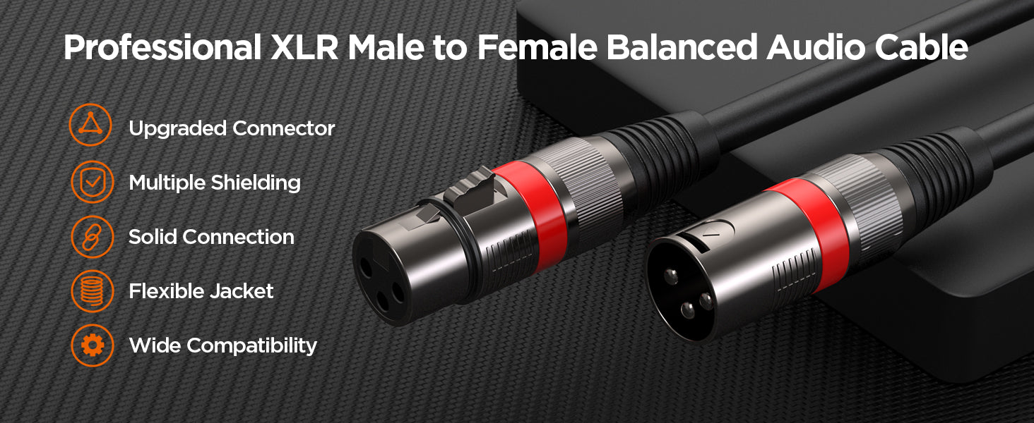XLR Cables 100FT/30M 2 Packs, Premium Heavy Duty Balanced Microphone Cable with 3-Pin XLR Male to Female Microphone Cord Connector Compatible with Microphones,Mixer,Speaker Systems,Preamps and More