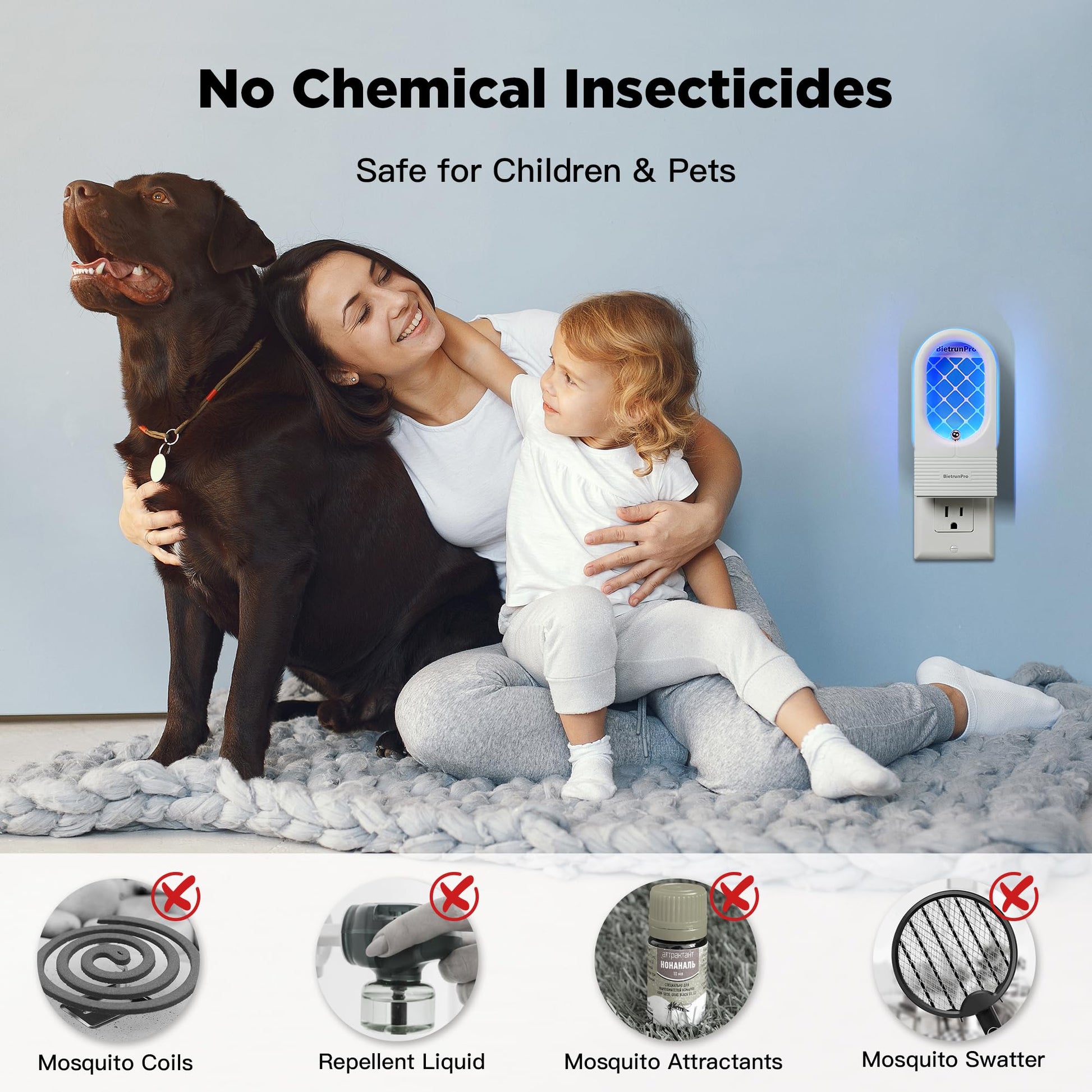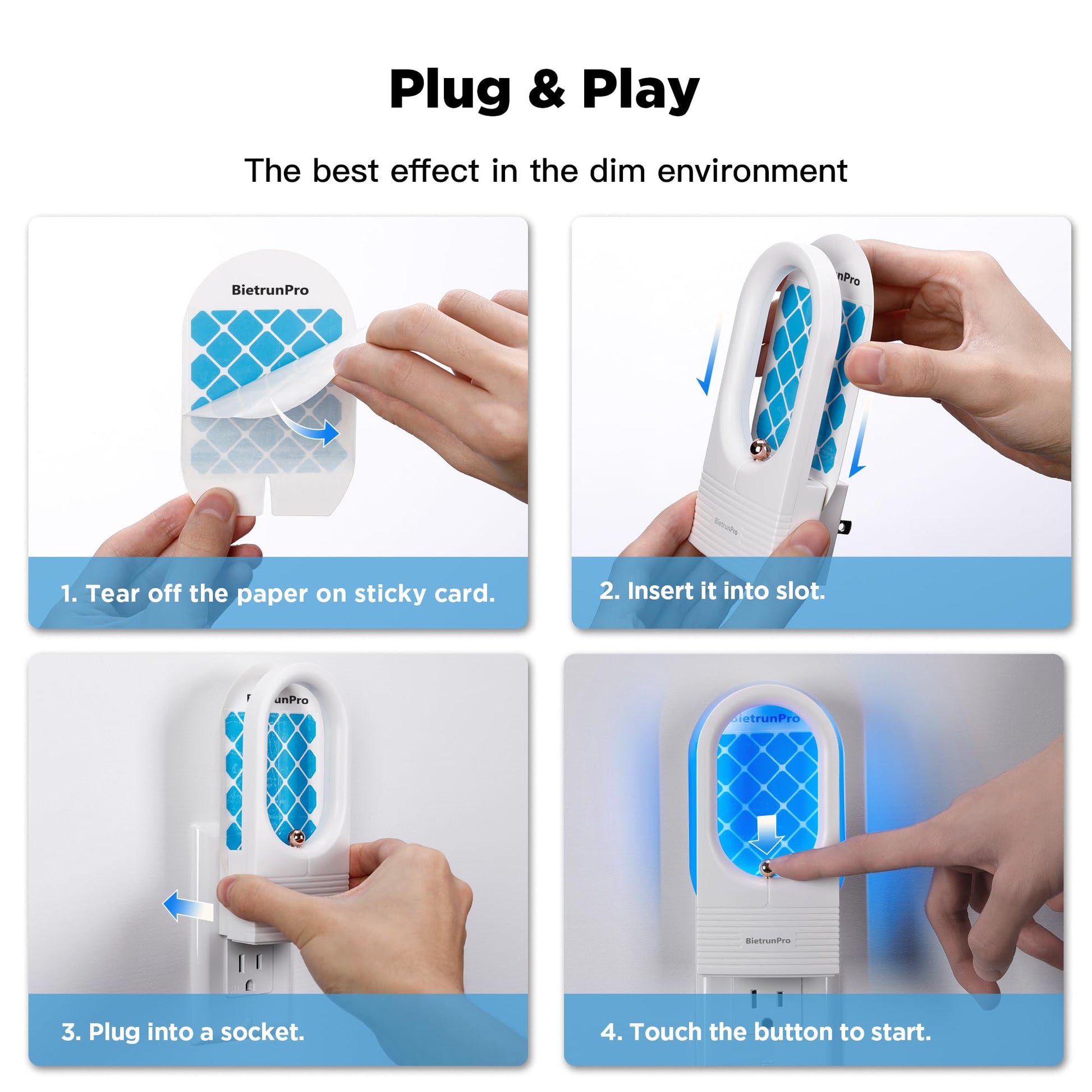 - Plug-and-play: ●Just remove the protective film from the adhesive board, insert it into the device, and plug it into a socket. Activation is as easy as a touch. ●We recommend that in the closed room, no one and the lights are not turned on to use this Fruit Fly Traps to capture more pests and achieve the best effect. Effectively prevent being bitten.
