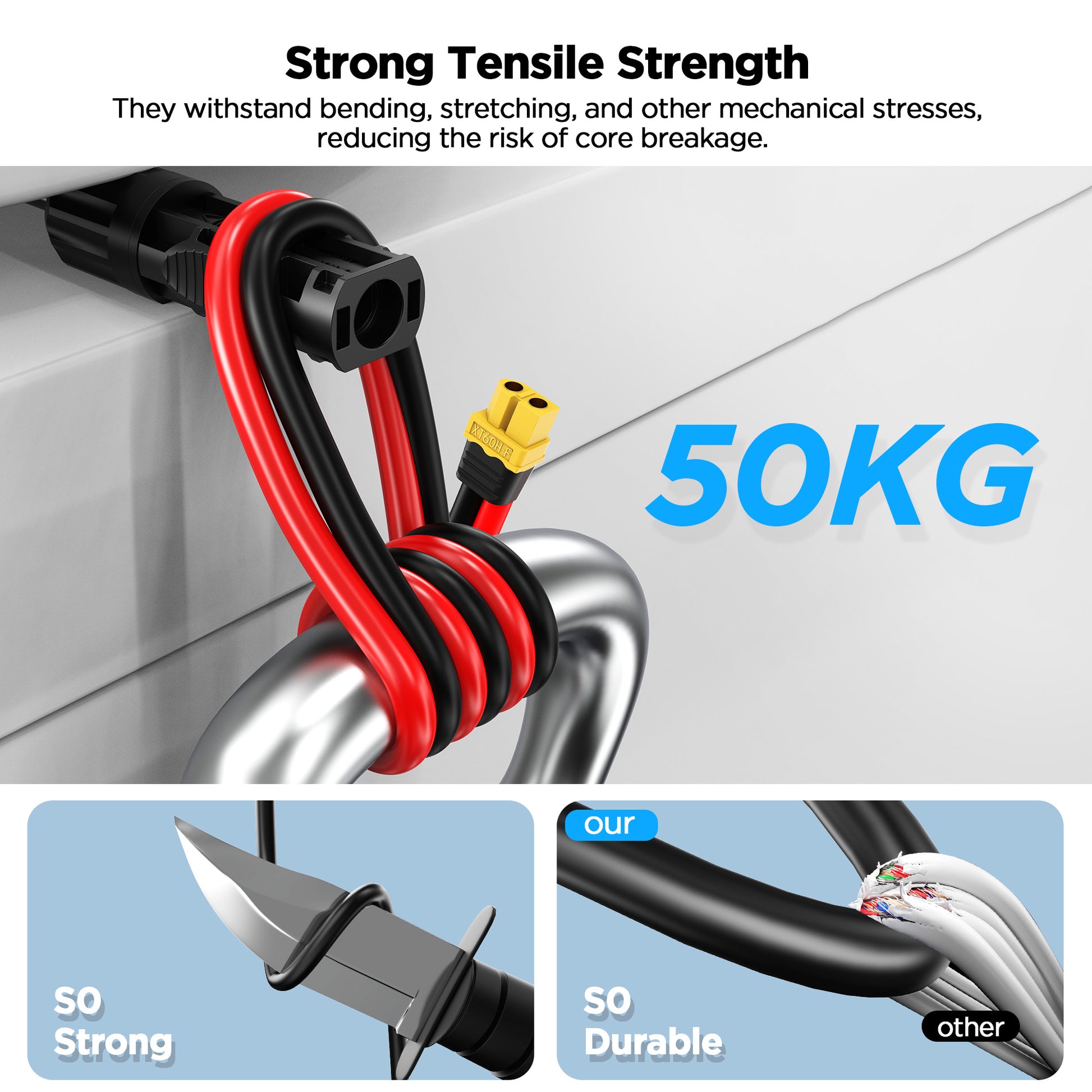- Ease of Installation: The MC4 to XT60 photovoltaic adapter cable comes pre-equipped with standard MC4 and XT60 connectors, ensuring simple plug-and-play functionality. The secure connection prevents accidental disconnections, offering peace of mind during use.