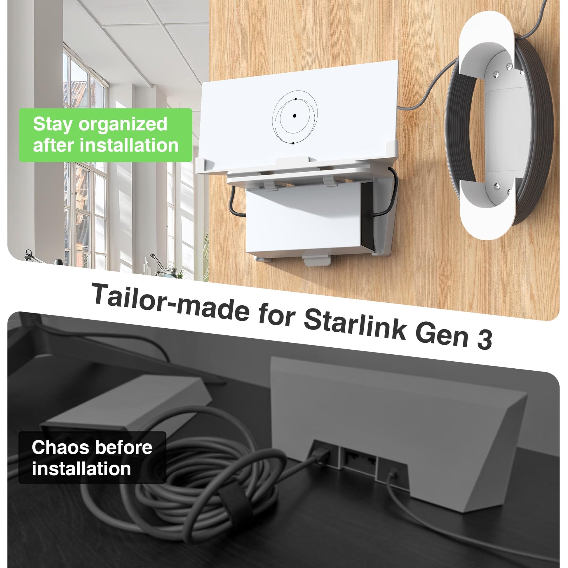 Starlink Gen 3 Router Mount 2 in 1, with Cable Caddy, Starlink Standard V3 Mesh Router and Star Link Gen 3 Power Supply Mounting Kit, Wall Holder Mesh Node Holder